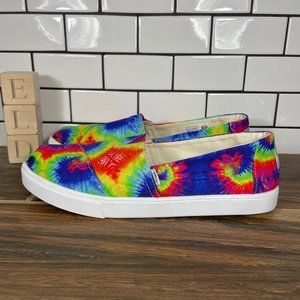 TOMS Classic Alpargata Womens Size 8.5 Shoes Rainbow Hippie Tie Dye Slip On Flat