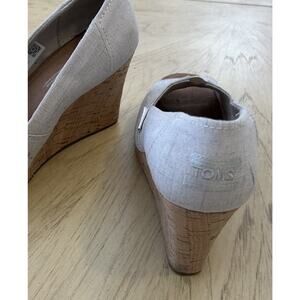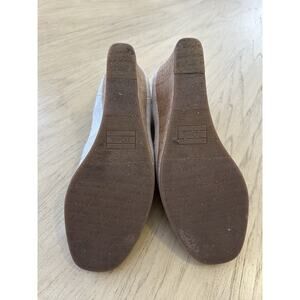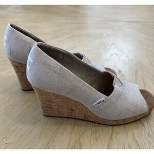 TOMS Classic Espadrille Wedge 7.5 Cork Platform Open Toe Crosshatch Jacquard