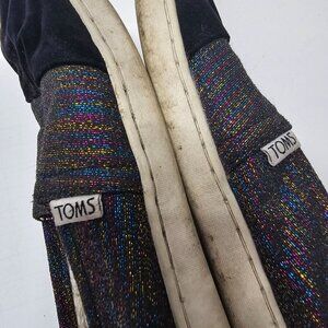 TOMS Classics Black Metallic Velvet Flats Sparkly Sherpa Lined size 4.5
