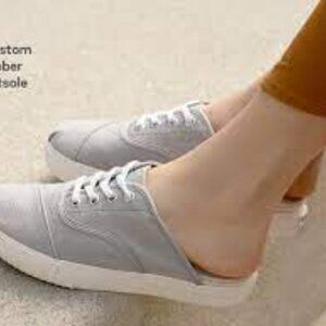 TOMS Cordones slip on mule lace sneakers Grey gray white Sz 6.5