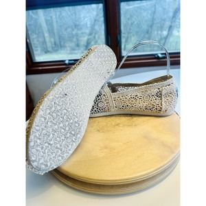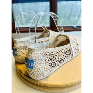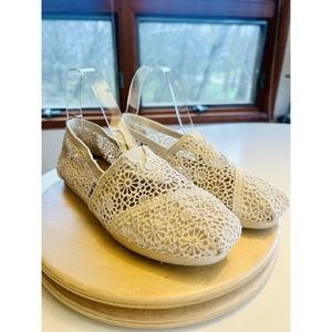 TOMS Cream Crochet Classic Canvas Alpargata Slip On Shoes Size 7.5 Women’s