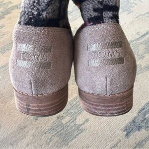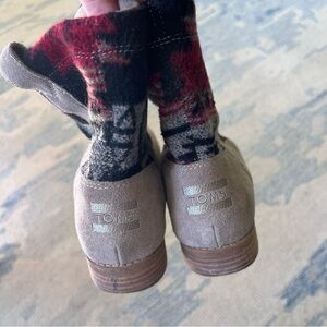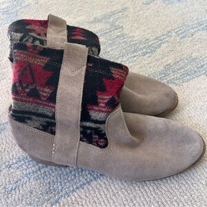 Tom’s Laurel Canyon Desert Taupe suede leather boot with a tribal Aztec blanket like detail. Pull-on style.