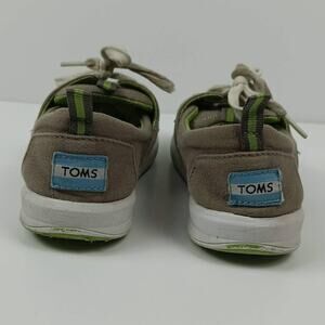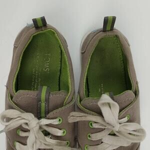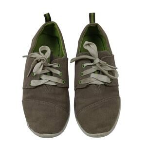 TOMS Del Rey Boys Gray Green Lace Up Canvas Sneakers Lightweight Comfy Size 3