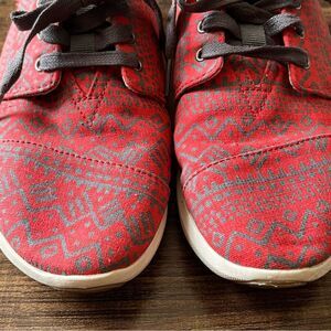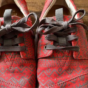 TOMS Del Rey Red and Gray Design Lace Up Sneakers Shoes Size 7.5