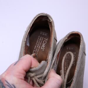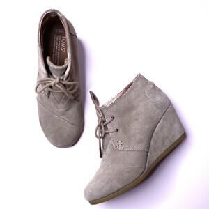 TOMS Desert Ankle Wedge Bootie Taupe Suede Ankle Round Toe Lace Up Women's 5.5