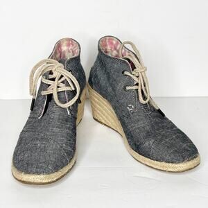 TOMS Desert Chambray Wedge Chukka Bootie Lace-Up Espadrille Gray Size Womens 6