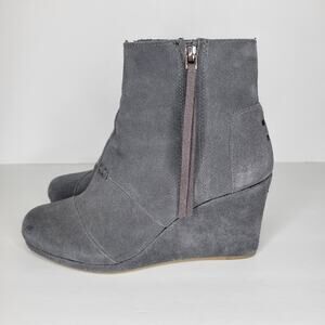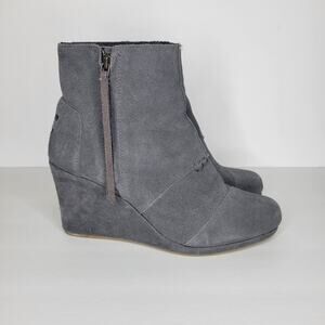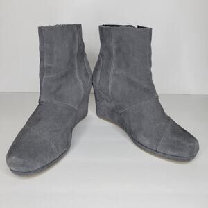 TOMS Desert Gray Suede Wedge Zip Booties Women's sz 9