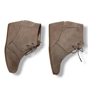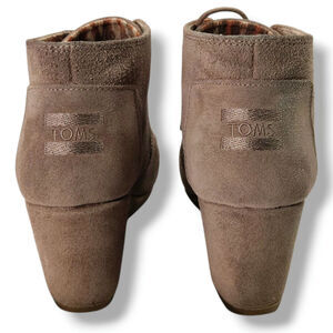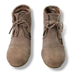 TOMS Desert Wedge Booties 7.5 Taupe Suede Lace-Up Heel Comfort Boho Fall Staple EUC