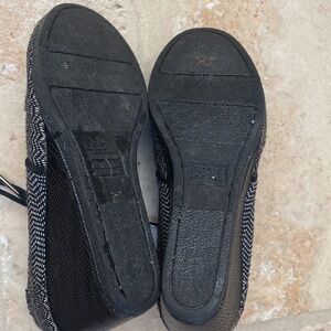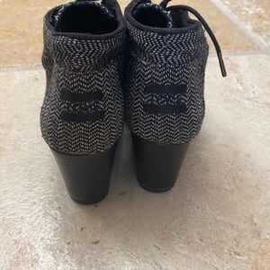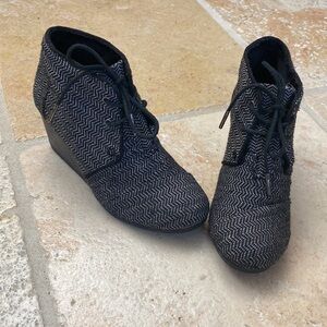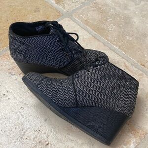 TOMS Desert Wedge Booties Herringbone Chevron lace up Black White Preppy Sz 6.5