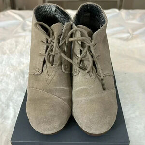 TOMS Desert Wedge Taupe 7.5 Wedge Boots Neutral Fall Shoes Back to School EUC