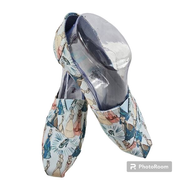 This is a BRAND NEW pair of Women's Size 10 alpargatas from TOMS. They have collaborated with Disney to produce a beautiful, pastel Cinderella print. These shoes are perfect for the Disney collector, and especially for those who love Cinderella. They have never been worn and the only flaw is the marking on one sole. You can find them currently on the "A" website for $115.