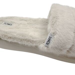 TOMS Faux Fur Quilted Slide Slippers Ivory Cozy Indoor Glam House Shoes 11
