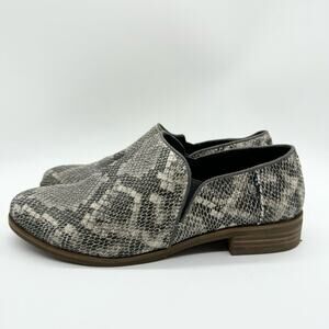 TOMS Faux Snake Shaye Low Booties Grey/White Size 8.5 Office Preppy Minimalist