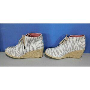 TOM'S GRAY & OFF-WHITE CANVAS WEDGE HEEL LACE UP SHOES, WOMAN'S SIZE 11
