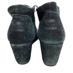 TOMS Genuine Leather Solid Black Suede Wedge Ankle Boots Booties Shoes sz 11