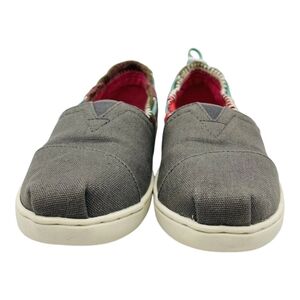 TOMS Gray Bimini Stripe Knit Sweater Canvas Flats Youth 5