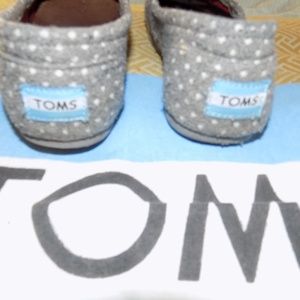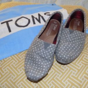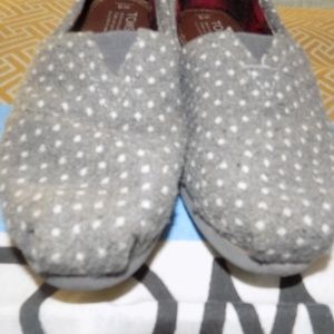 Classic TOMS, gray dot, slip ons. Great condition. Normal wear on bottom. Dust bag included.