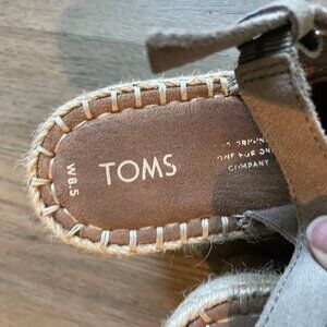 TOMS Gray Suede Espadrille Wedge Sandals Size 8.5 Minimalist Coastal Summer!
