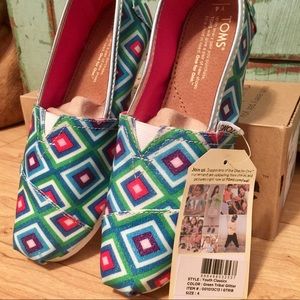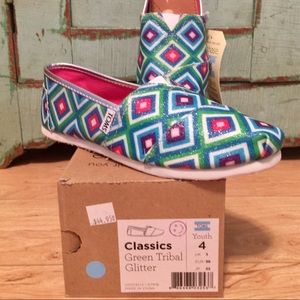 New, Never Worn, w/Tags TOMS Green Tribal Glitter Youth Classics. Youth Sizes Available🚫No Trades🚫