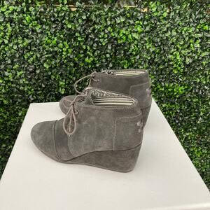 TOMS, Grey Suede Leather Wedge Booties, Women’s Size 11
