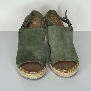 Toms Sandals Womens 9.5 Monica Slingback Espadrille Green Wedge Heels 10011847