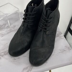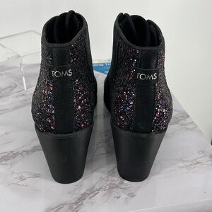 TOMS Hyde Glitter Round Toe Wedge Ankle Boots Black 8.5 Sparkle Comfy Leather