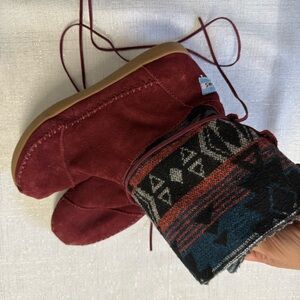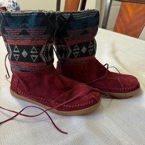 TOMS Jacquard Nepal Suede Boots Size 7 Maroon Lace Around Ankle