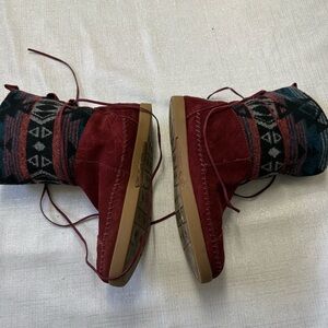 TOMS Jacquard Nepal Suede Boots Maroon Lace Around Ankle