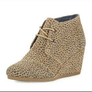 RARE! TOMS Kala suede desert tan leopard wedge booties. Good condition. NO TRADES.
