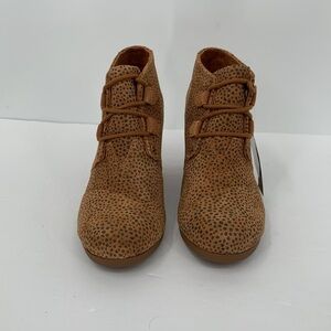 TOMS Kala wedge ankle boots booties lace-up Cheetah suede shoe brown new 6.5