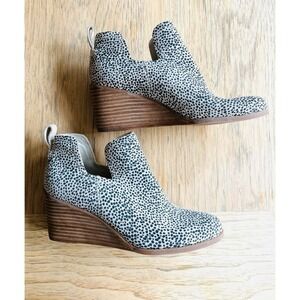 TOM'S Kallie Wedge Bootie Macademia Leopard Print Shoes 2.5" Heels SIZE 7 EUC