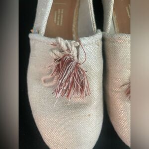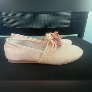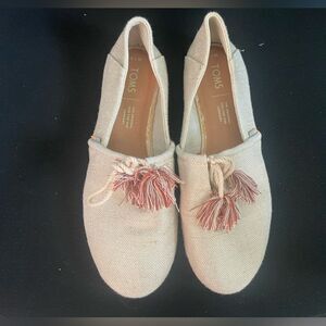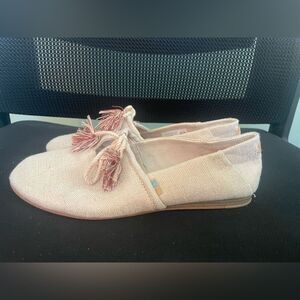 TOMS Kelli Beige Tassel Slip-On Flat Rose Gold 7.5