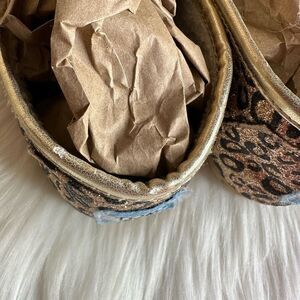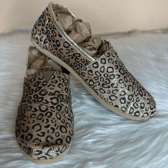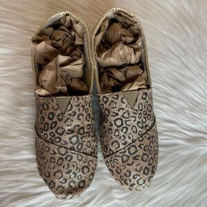 TOMS LEOPARD CHEETAH GLITTER GOLD BALLET FLAT SLIP On Shoes 4. VGUC with normal signs of wear. Please see all pics for condition. Question welcomed.