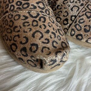 TOMS LEOPARD CHEETAH GLITTER GOLD BALLET FLAT SLIP On Shoes 4