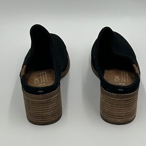 TOMS Leila Black Suede Mules Wooden Block Heel 9 Women's Almond Toe Slip On