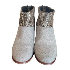 TOMS Leila Bootie Grey Felt Metallic Tweed Shine Boucle Boot Women's Size 8.5
