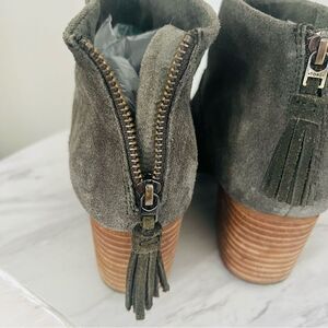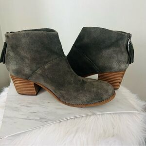 TOMS Leila Suede Block Heel Bootie, Fall Ankle Boot, Gray/Sage, Size 9.5,