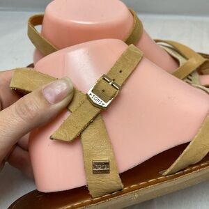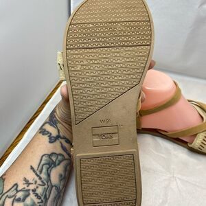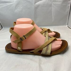 TOMS Lexie Sandstorm Leather Sandals Tan / Gold Shimmer Size 9.5