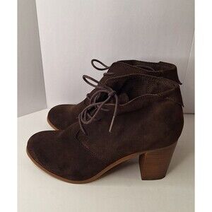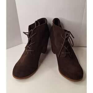 TOMS Lunata Brown Suede Heeled Lace Up Ankle Boots Women's Sz 8 Bohemian Hippie