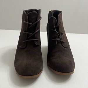 TOMS Lunata Lace Up Bootie in Chocolate Brown Suede