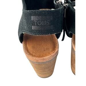 TOMS Majorca Cutout Black Heeled Sandal Suede Block Wood Heel Peeptoe Women’s 8