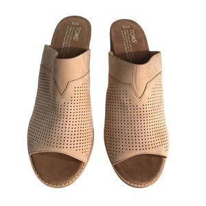 TOMS Majorca Neutral Peep Toe Mule Sandal Sandstorm Nubuck Heel Woman's' Size 12