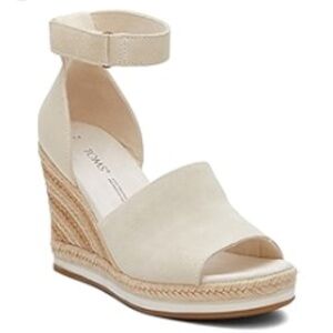 TOMS Marisol Beige Suede/Linen Ankle Strap Espadrille Wedge Sandals NWOB