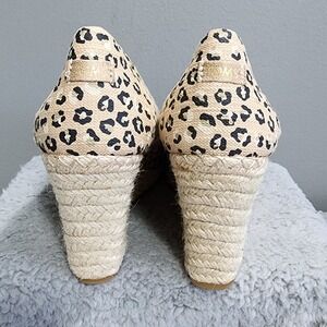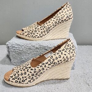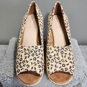 TOMS Michelle Cheetah Peep Toe Womens Espadrille Wedges Size 10 Slip On Sandals
