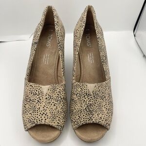 TOMS Michelle slip-on wedges peep toe sandals cheetah print womens Size 7W
