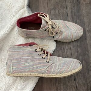 Toms hightop multicolor sneakers. Espadrilles canvas sneakers. Worn a few times but in great conditions. Size 10