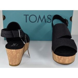 BRAND NEW IN BOX TOMS CLAUDINE BLACK PLATFORM WEDGE SANDALS. 100% authentic.