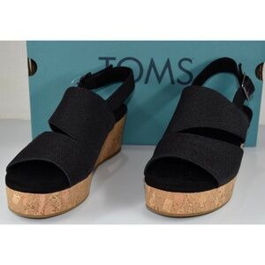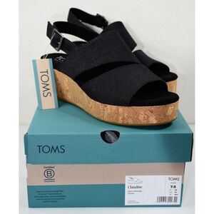 TOMS NIB CLAUDINE BLACK PLATFORM WEDGE SANDAL. SIZE 7.5M