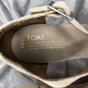 TOMS Natural Sierra Canvas Burlap Crisscross Open Toe Cork Wedge Sandals Sz 9.5