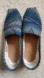 Chic TOMS slip-ons with navy and teal woven design. Perfect for casual wear. Gently worn Size 9 See photos for wear